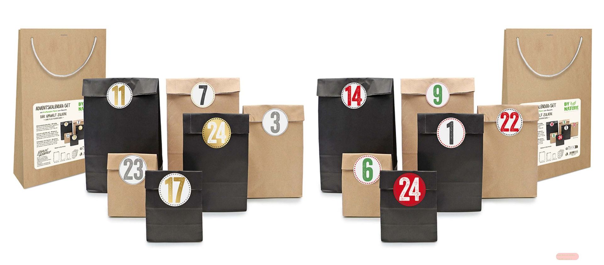 - Adventskalender-Bastelset Pure x-mas, 24 Tüten,3 Grössen & Sticker, gemischt - VE 5 (Sets)