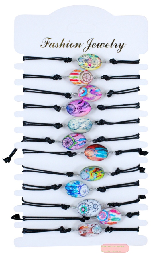 - Armbänder aus Leder mit buntem Glastop Traumfängerdesign gemischt, auf Karten - VE 36