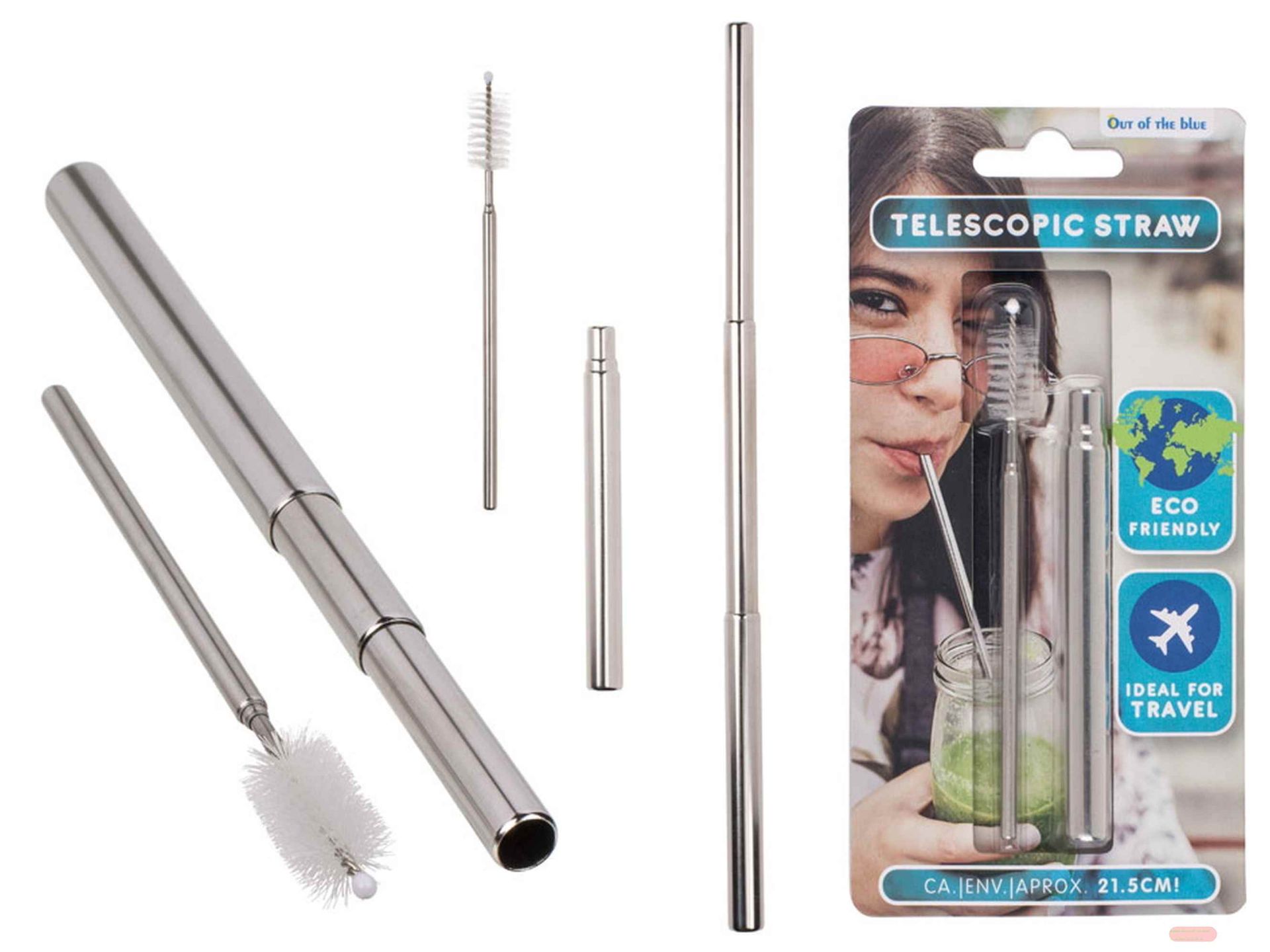 - Ausziehbarer Metall-Trinkhalm Telescope, ca.21,5cm, Reinigungsbürste, Blisterkarte - VE 8