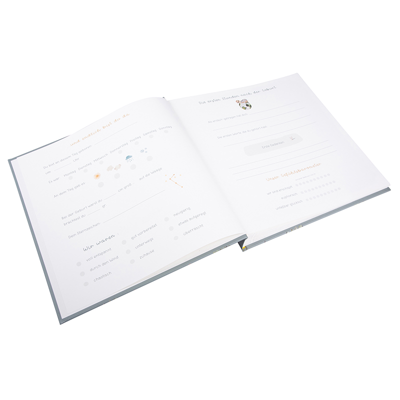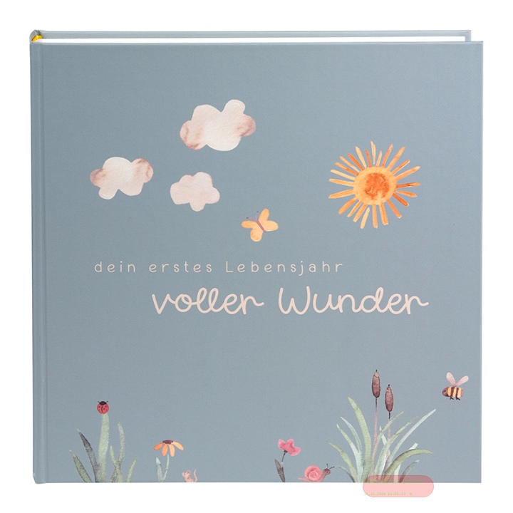 - Babyalbum 4 S.illu., inkl. 6 farb. illu.Blättern, 60 S.weiss, 30x31cm, Wiese salbeigrün