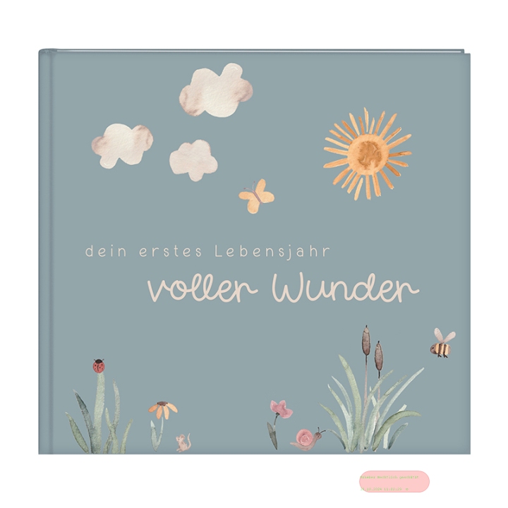 - Babytagebuch mit 100 Seiten illustriert, 24,5x22,5cm, voller Wunder - Wiese salbeigrün