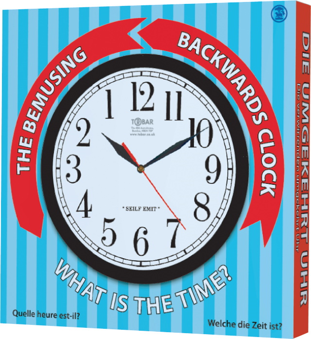 - BACKWARDS CLOCK, Rückwärts laufende Uhr, ca.21cm, Box - VE 3