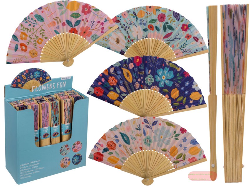 - Bambus-Fächer Flowers, ca.21cm, farben mehrfach gemischt, Display - VE 24
