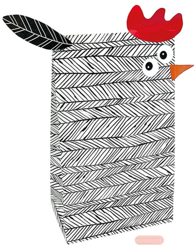 - Bastelset Kraftpapier Tüten 16x26x8cm, 2er Set mit Stickerbogen, Huhn sw/w - VE 15 (Sets)