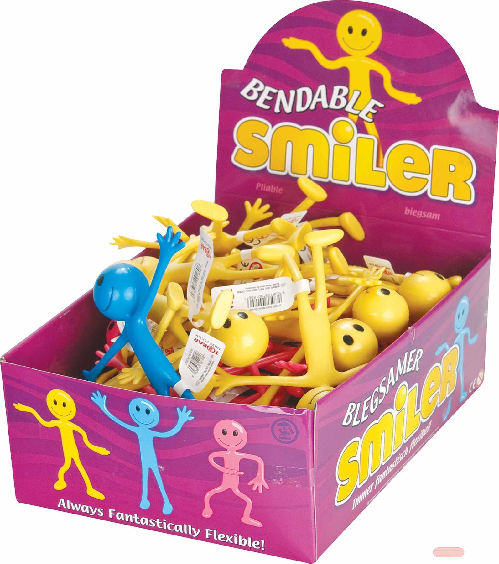- BENDABLE SMILER, biegsam, kunststoff, diverse Farben, ca.6,5cm, im Display - VE 36