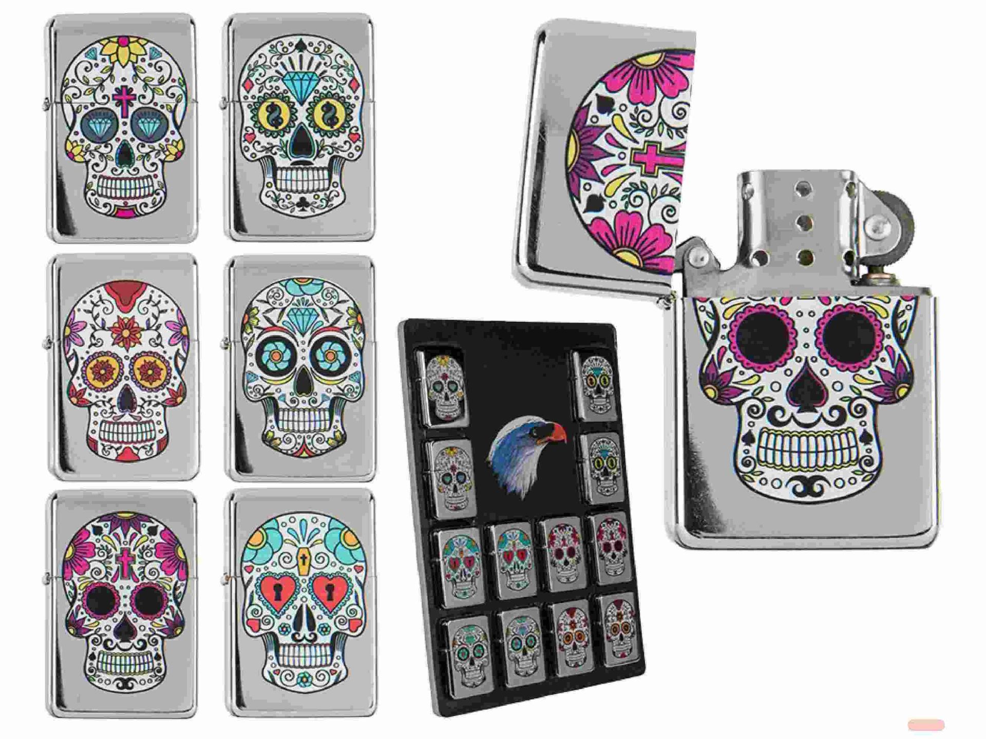 - Benzin-Feuerzeug Coloured Skull, 6-fach ass., 2 x Displays - VE 24