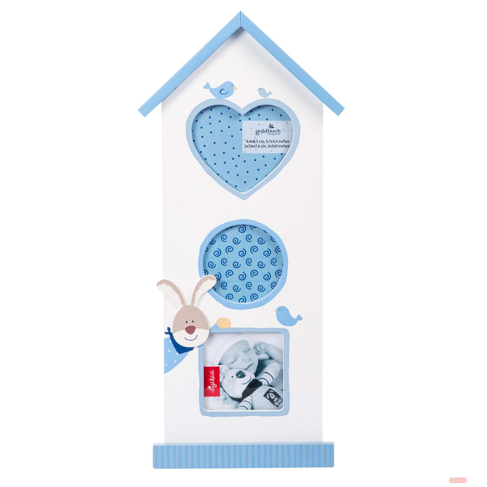 - Bilderrahmen Haus aus Holz, ca.37x15cm, für 3 Fotos 6,5x6,5cm, Semmelbunny - VE 2