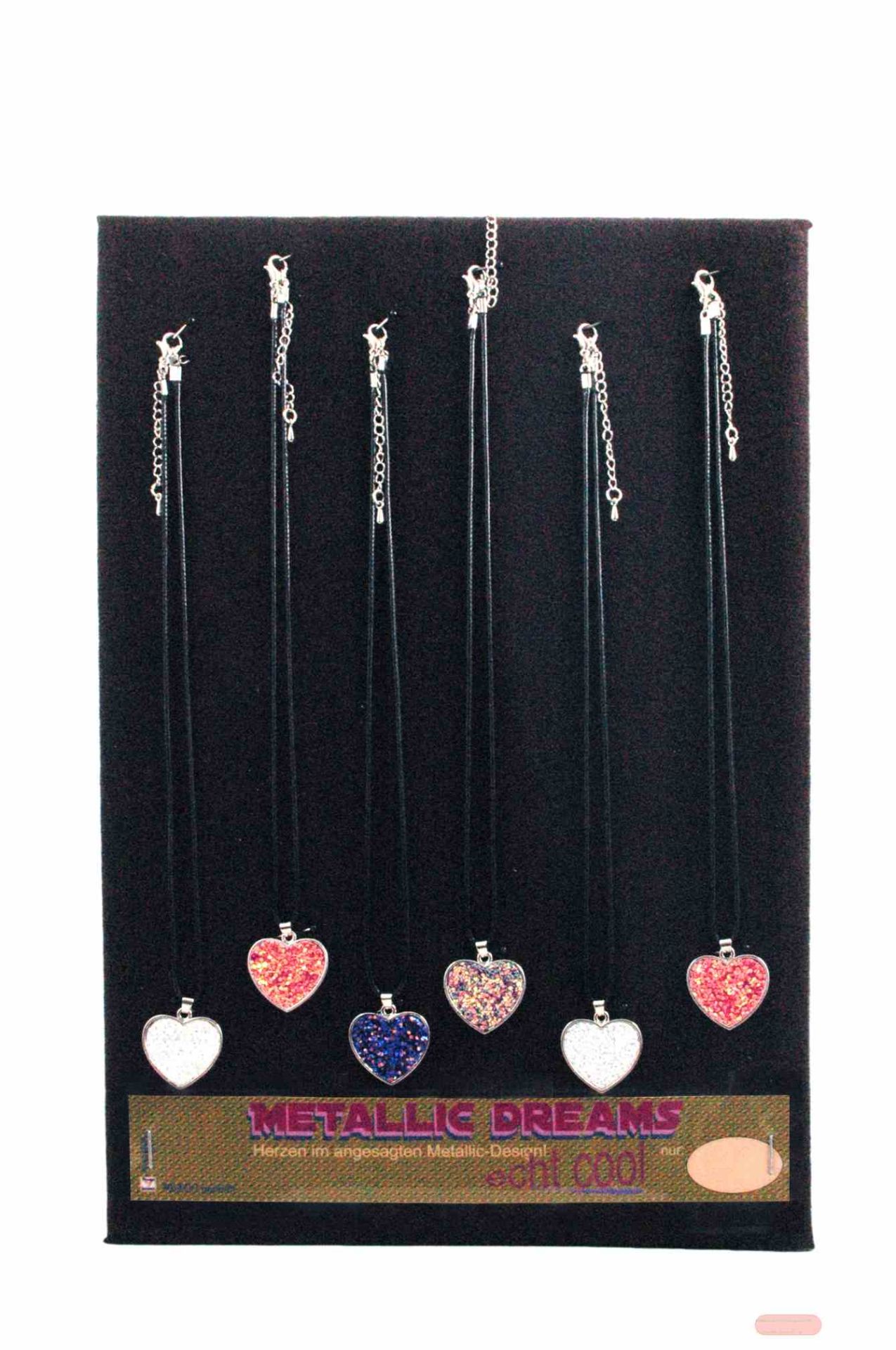 - Collier Glitter Herz Anhänger für Discoqueens, Displaykarte - VE 24