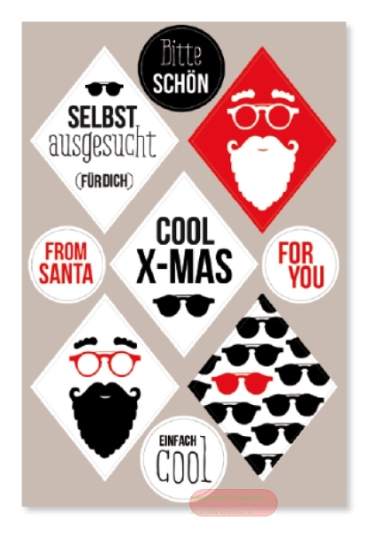 - COOL X-MAS, Stickers Rauten 3,9x5cm & rund 2,2cm (36er-Pack) - VE 12 (Pack)