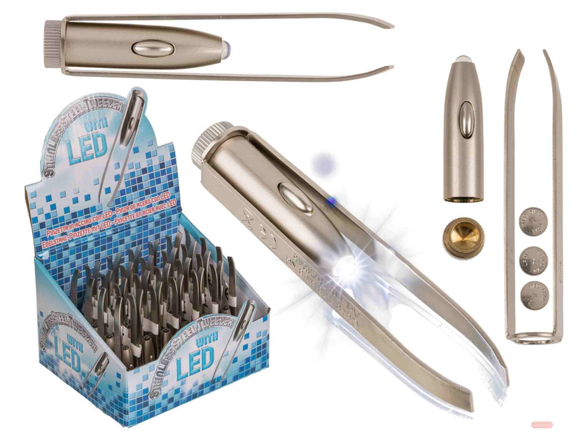 - Edelstahl-Pinzette mit LED, ca.9cm, inkl.Batterien, im Display - VE 24