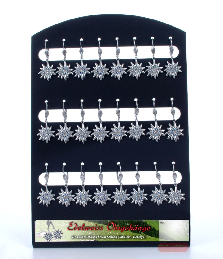 - Edelweiss Ohrgehänge mit Strass-Steinen platiniert, Display - VE 12 (Paar)