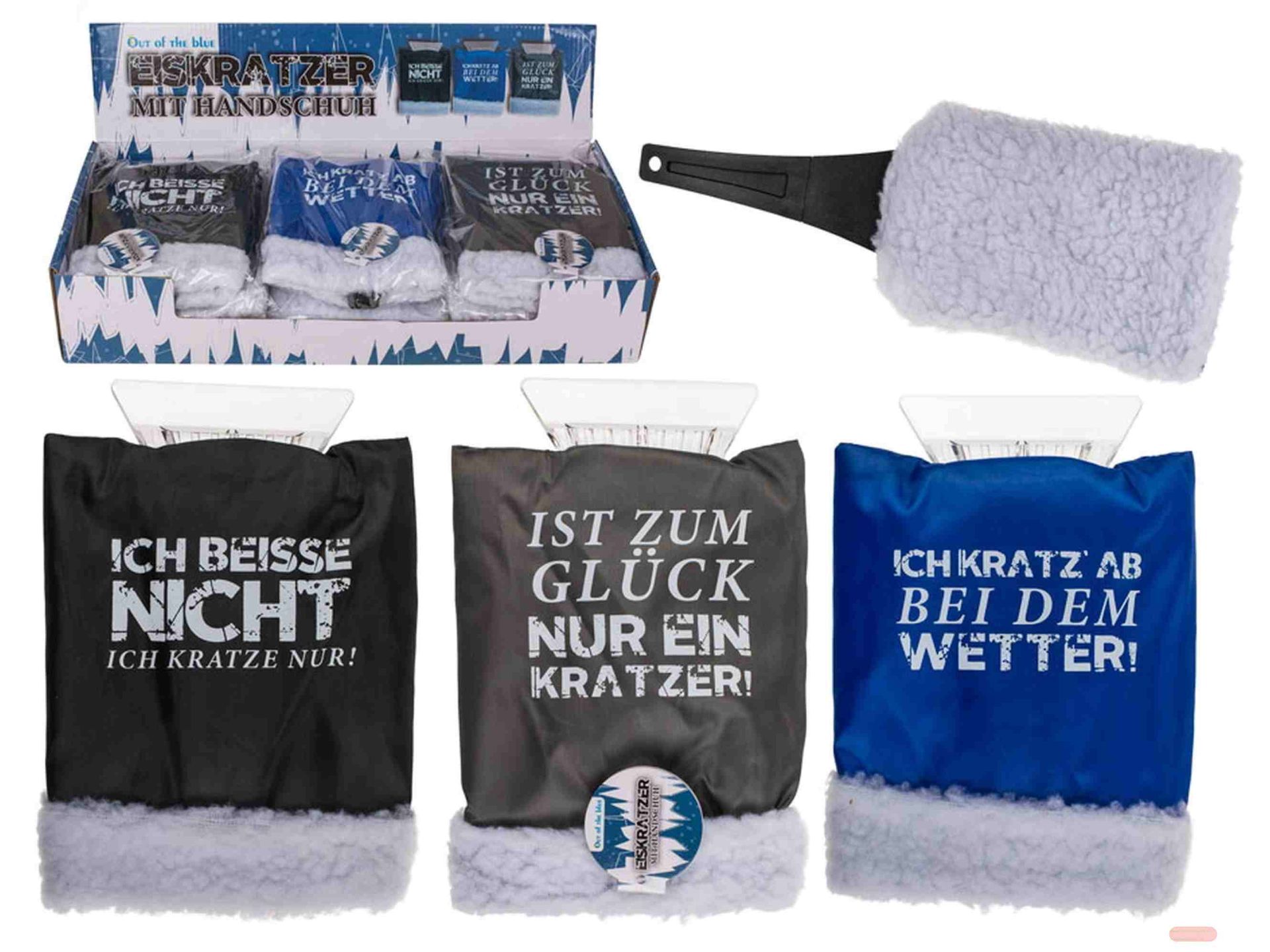 - Eiskratzer im Handschuh, 3 deutsche Sprüche ass., ca.27x15cm, Display - VE 12
