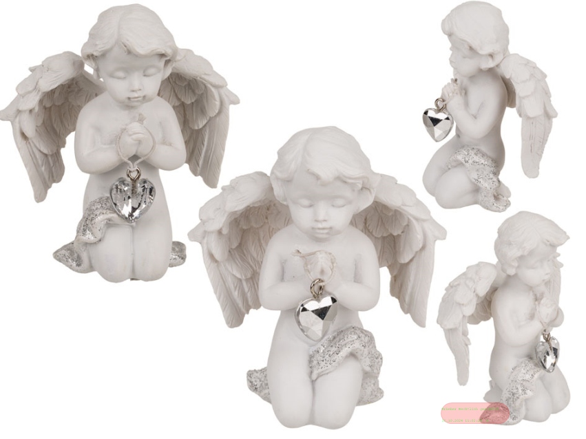 - Engel knieend mit Kristall-Herz, polyresin, ca.6x7,5cm, 2-fach ass., Display - VE 12