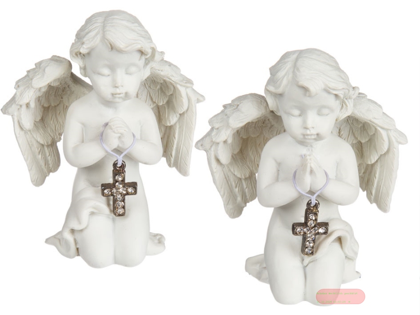 - Engel knieend mit Kristall-Kreuz, polyresin, ca.8x6,5cm, 2-fach ass. (SR)