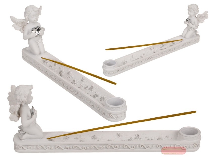 - Engel mit Kristall-Herz auf Räucherstäbchenhalter, polyresin, ca25,5x5,5x9cm - VE 6