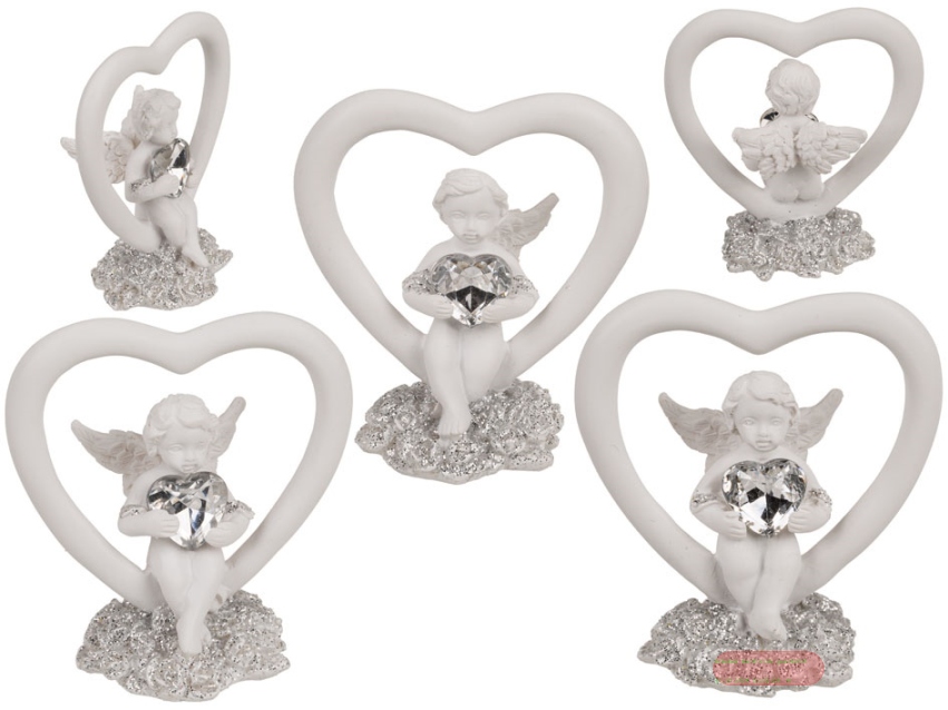 - Engel sitzend mit Kristall-Herz im Herz, polyresin ,ca.5x3x6cm,3-fach ass.,Display - VE 12