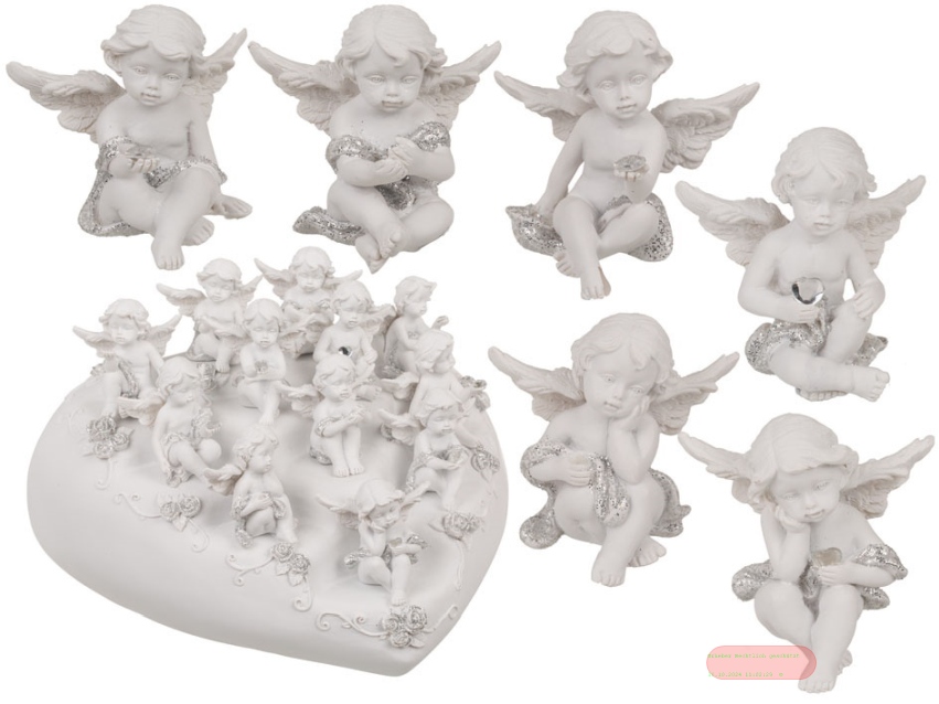 - Engel sitzend mit Kristall-Herz, polyresin, ca.5cm, 12-fach ass., mit Herzdisplay - VE 96