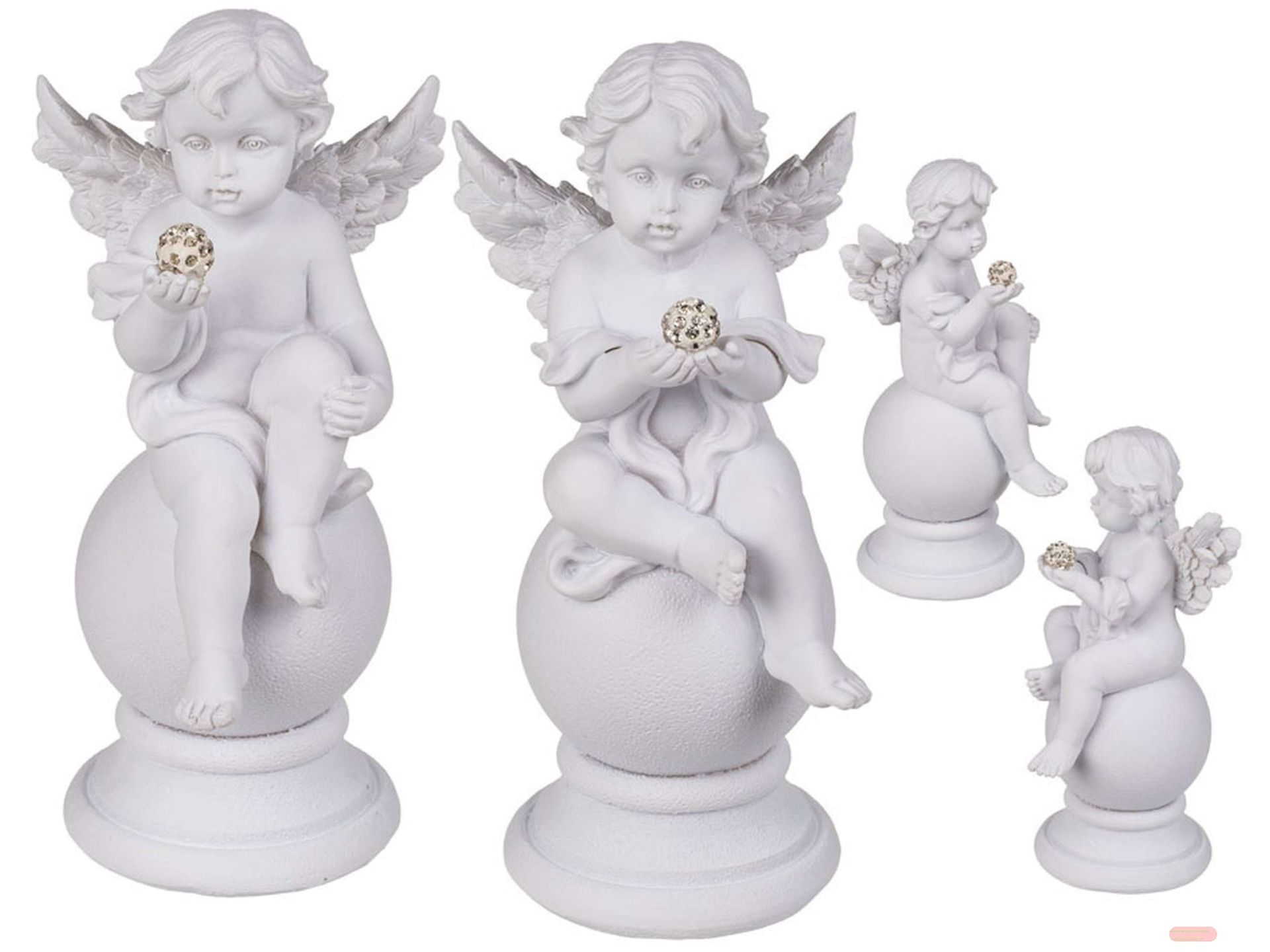 - Engel weiss sitzend auf Ball mit Kristalldeko, ca.8x16,5cm, polyresin, 2-fach ass. - VE 6