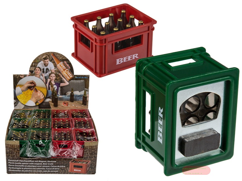 - Flaschenöffner mit Magnet, Bierkiste, ca.6cm, 2-fach ass., im Display - VE 24