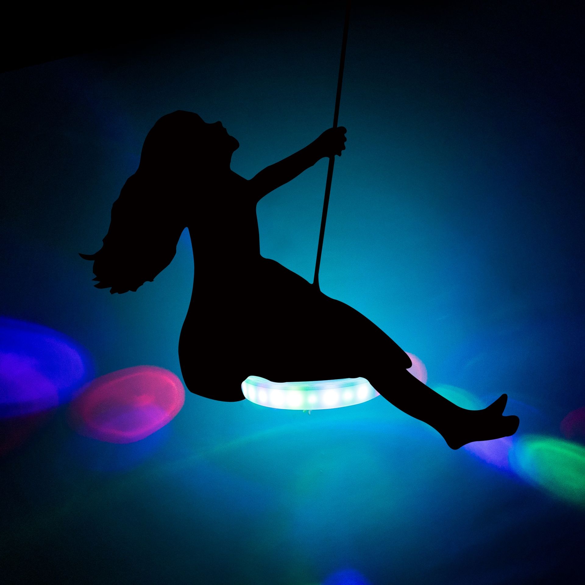- FLASHING UFO SWING SEAT, Sitz an Schnur, batterienbetr. ca.28cm, Box