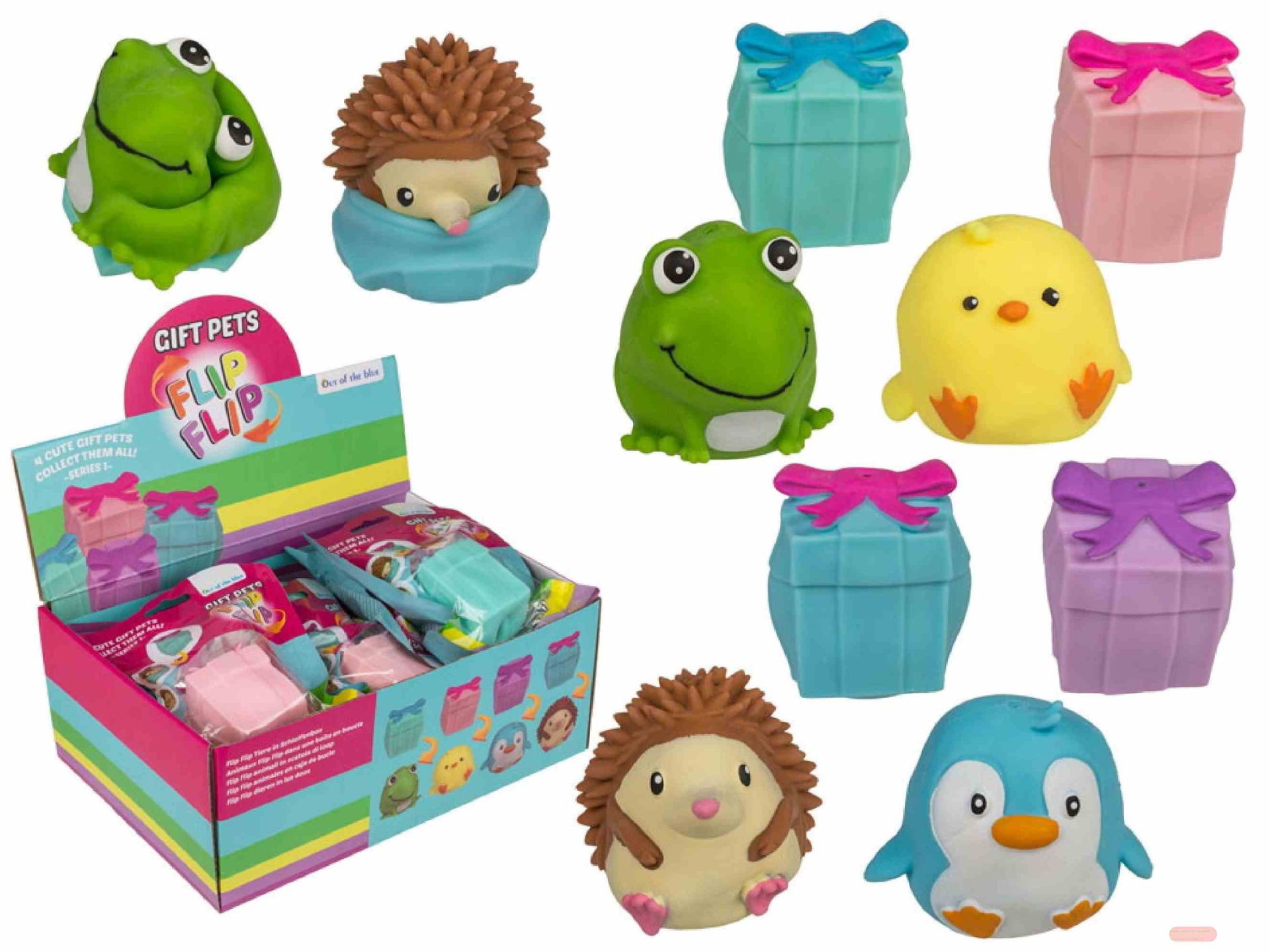 - Flip Flip Tiere in Schleifenbox, 4-fach gemischt, ca.5x5x6cm, Beutel, im Display - VE 12