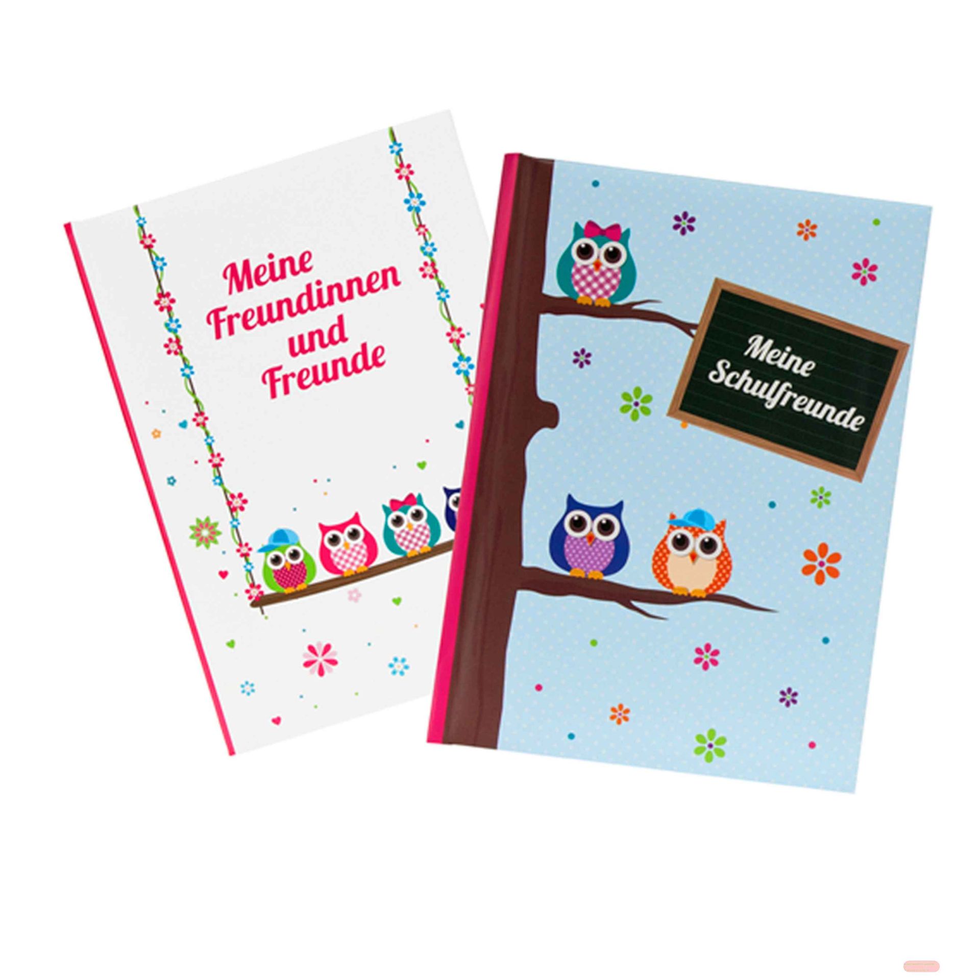 - Freundebuch DIN A5 - 88 S.illustriert, Eule, 2-fach ass. - VE 2