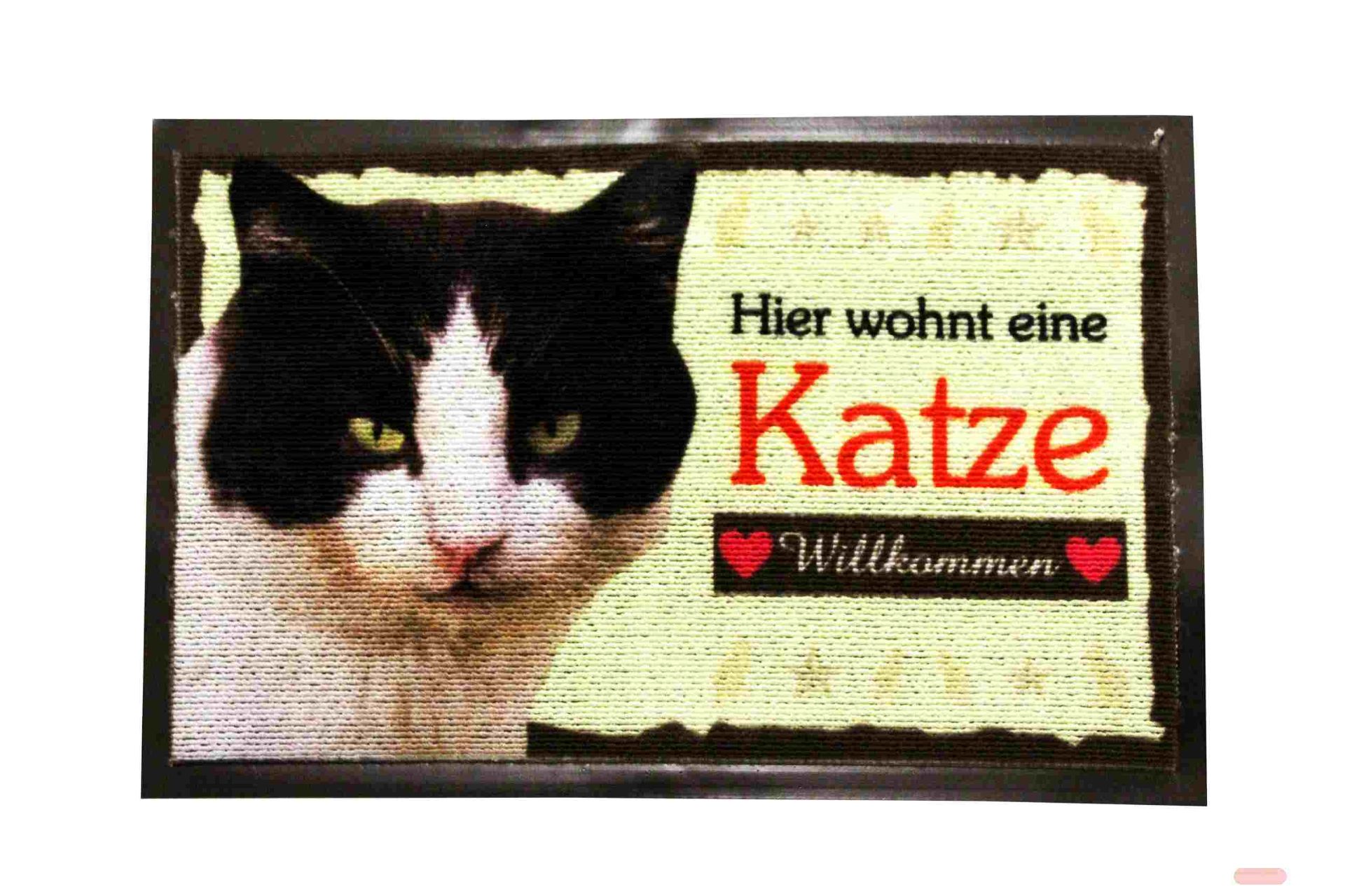 - Fussmatte 37,5x58cm, Kautschuk/Polyester, Katze schwarz/weiss - VE 2