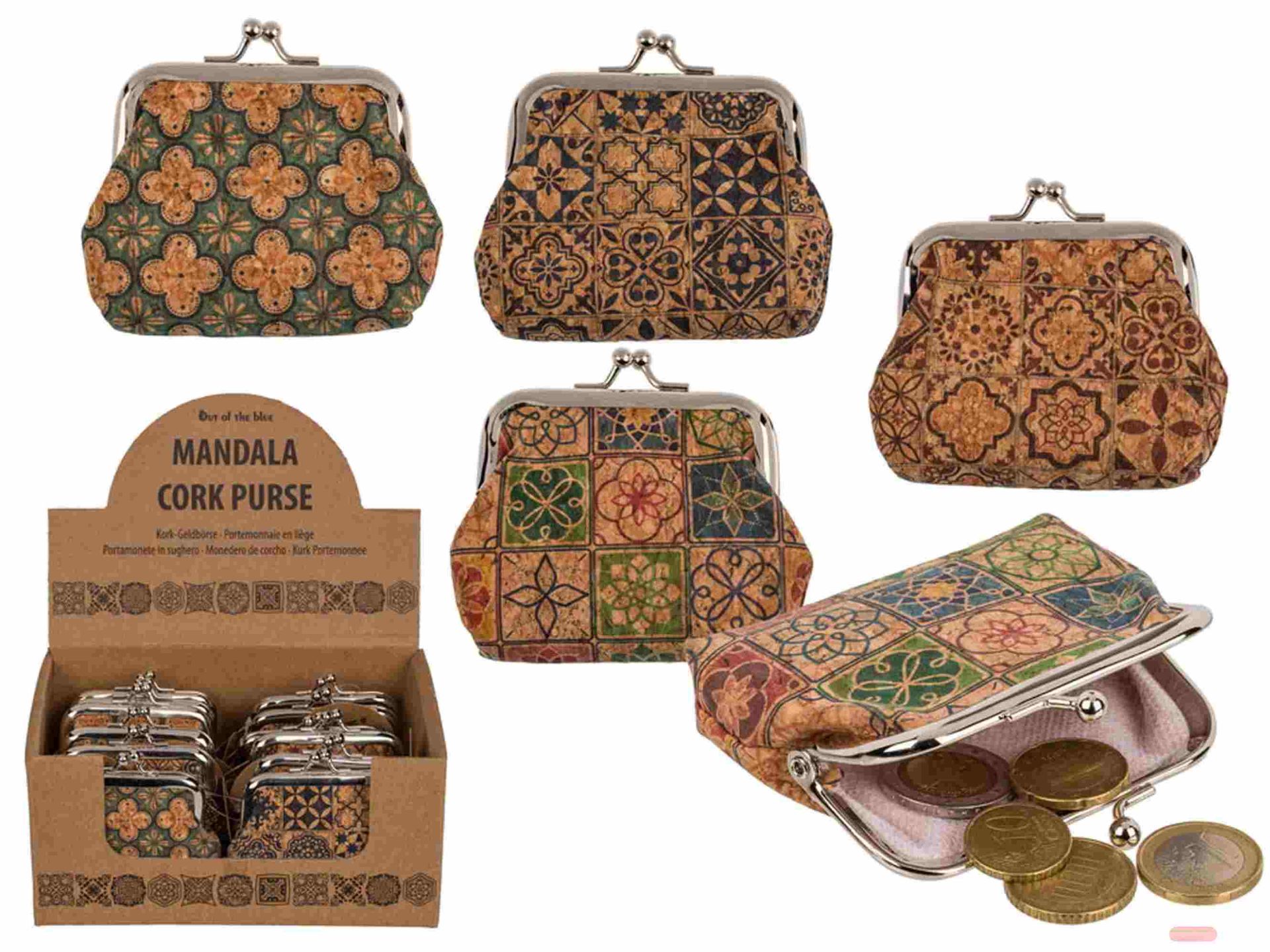 - Geldbörse aus Kork, Mandala, ca.9x8cm, 4-fach sortiert - VE 12