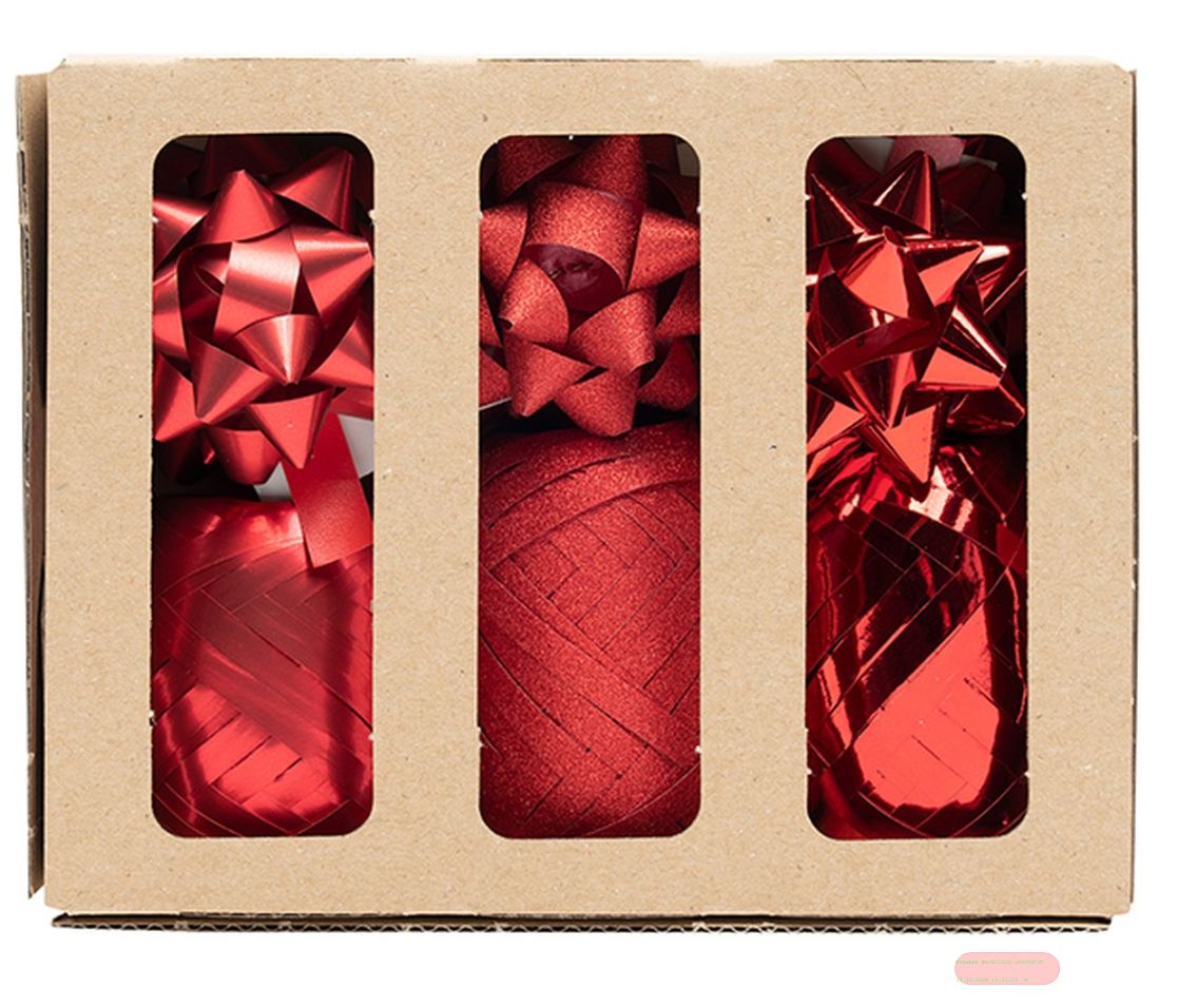 - Geschenkband-Sets 9-teilig, Inhalt 6 x Rosetten & 3 x Eiknäuel, rot - VE 10