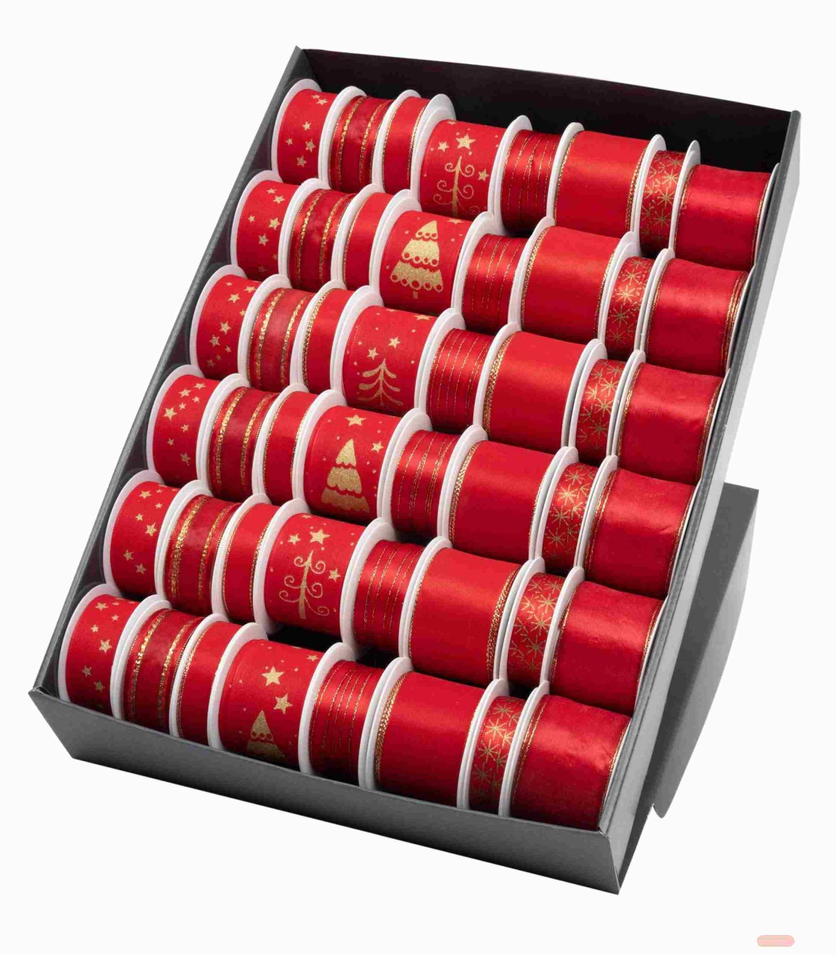- Geschenkband, z.T. mit Drahtkante, verschiedene Breiten/Längen, rot gemischt - VE 48
