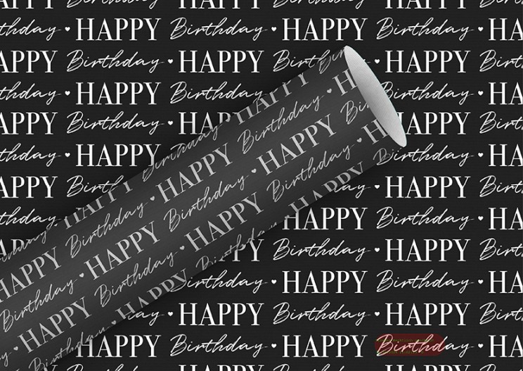 - Geschenkpapier Rollen 2m x 70cm, Graphic Bithday sw - VE 5
