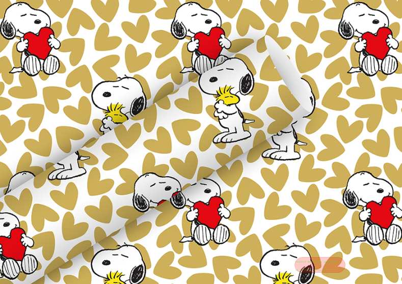 - Geschenkpapier Rollen 2m x 70cm, Snoopy Love gold - VE 5