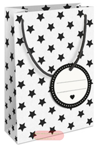 - Geschenktasche Kraftpapier 12x18x6cm, Just Stars schwarz - VE 10