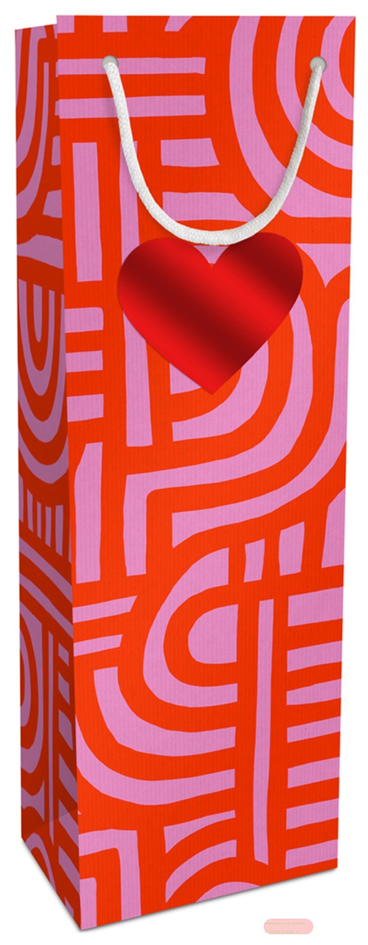 - Geschenktasche Kraftpapier, 12x36x10cm, Labyrinth rot m.Herz - VE 10