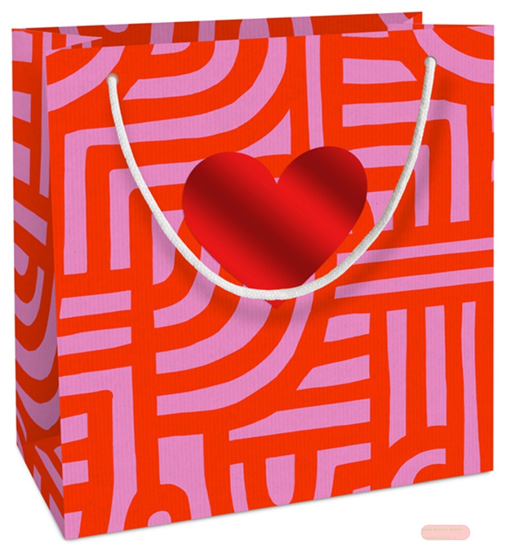 - Geschenktasche Kraftpapier, 20x21x8cm, Labyrinth rot m.Herz - VE 10