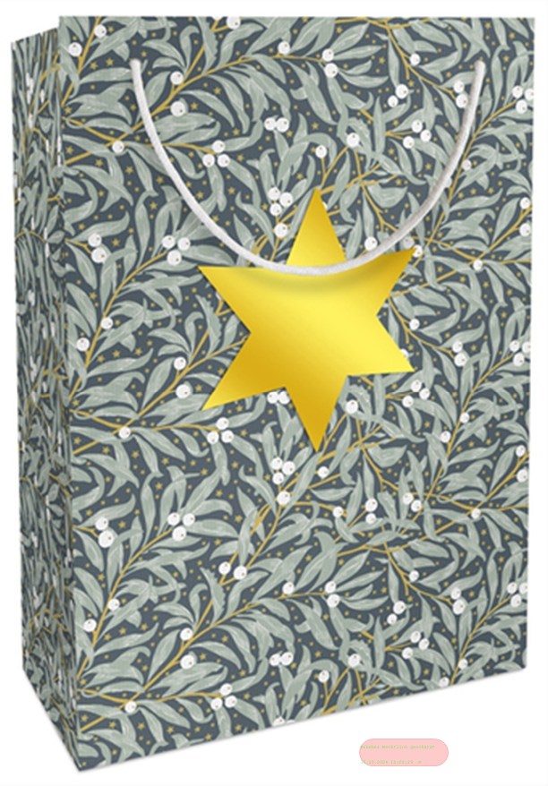 - Geschenktasche Kraftpapier, 23x33x11cm, Christmas Leaves indigo - VE 10