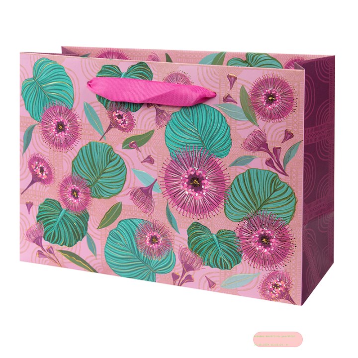 - Geschenktaschen, 25x18x10cm, Tropical Leaves pink - VE 6