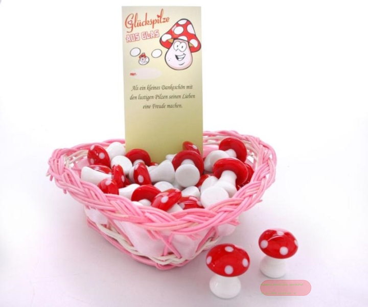 - Glücks-Fliegenpilze aus Glas, ca.2cm, Handarbeit, im Körbchen - VE 60