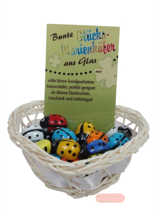 - Glücks-Marienkäfer bunt aus Glas, ca.2x2cm, Handarbeit, im Körbchen - VE 45