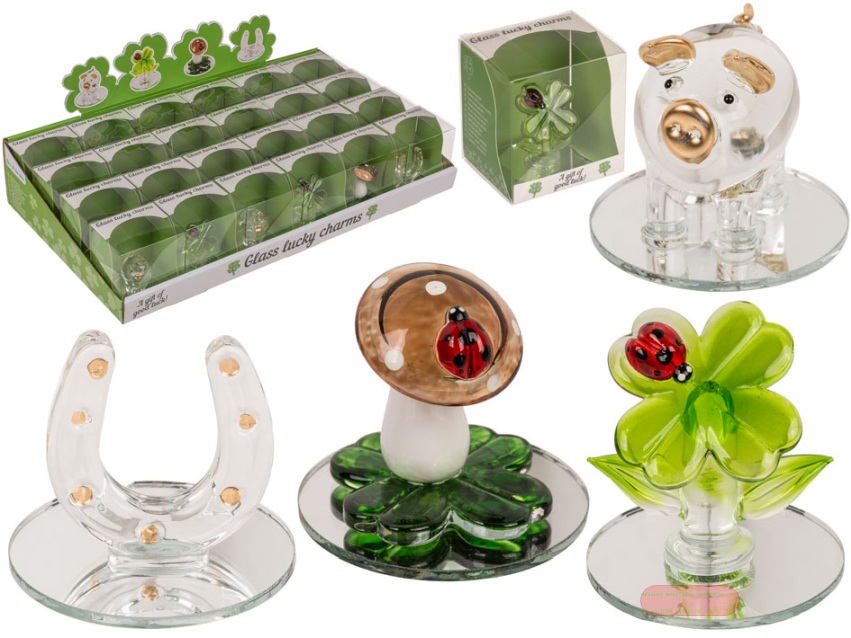 - Glücksbringer aus Glas ,ca.4,5cm, 4-fach gemischt im Display - VE 24