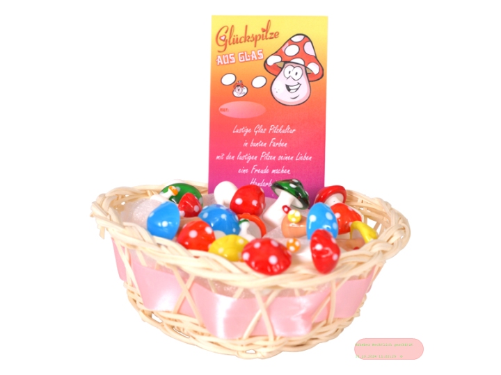 - Glückspilze bunt aus Glas, ca.2,5x2cm, Handarbeit, im Körbchen - VE 50