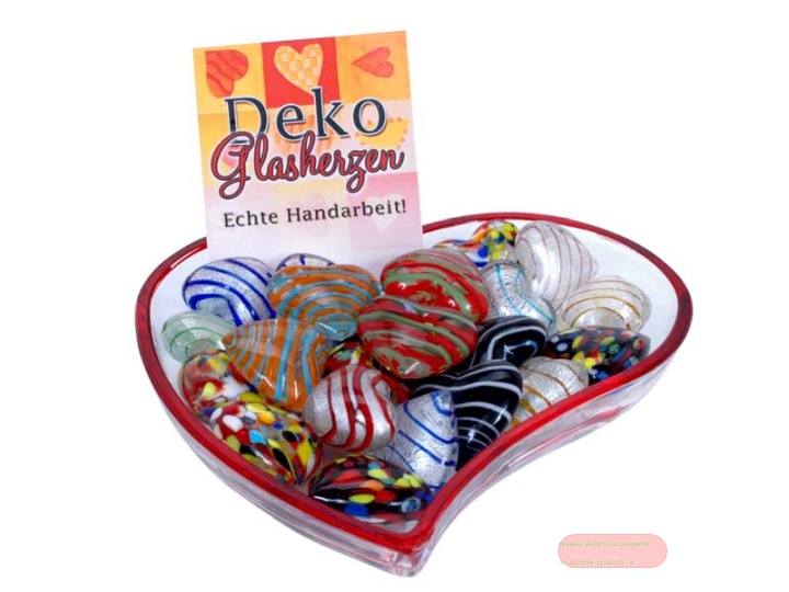 - Glas-Herzen , mundgeblasen, 4x4cm, 12 fach-ass. - VE 24