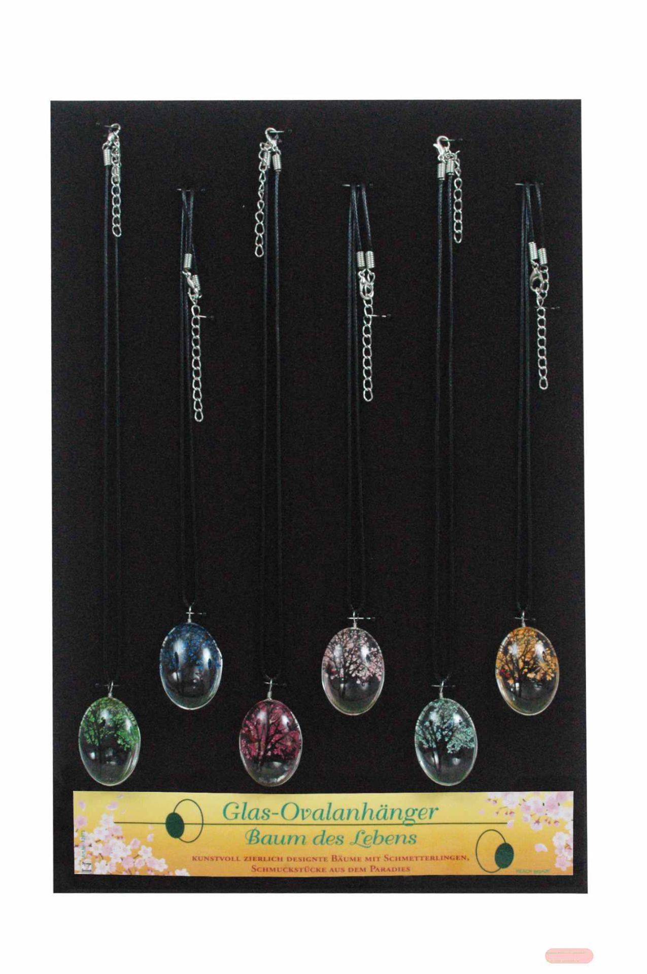 - Glasanhänger Oval Baum des Lebens farblich gemischt, an Kautschukband - VE 24
