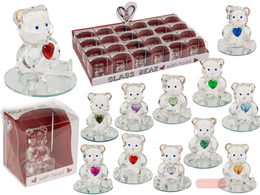 - Glasbär mit Herz, ca.5cm, 12-fach ass. in Box, Display - VE 24