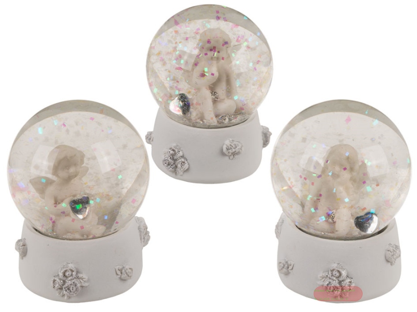 - Glitterkugel Engel Kristall-Herz im Herz,polyresin ,ca.5x5x6cm,3-fach ass.,Display - VE 12