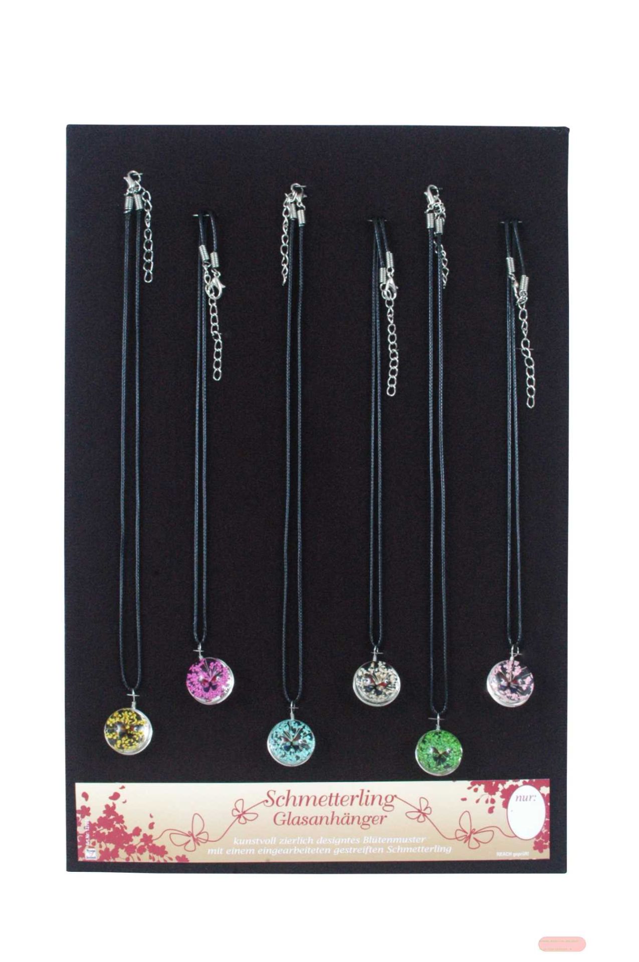 - Halskette mit gemischten Glas-Schmetterling-Anhänger, Displaykarte - VE 24