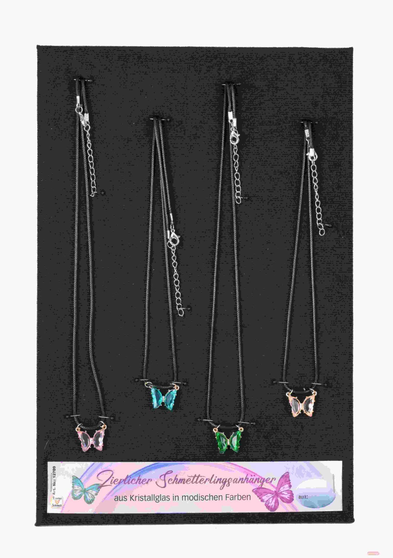 - Halskette mit Glaskristall Schmetterling-Anhänger, Displaykarte - VE 24