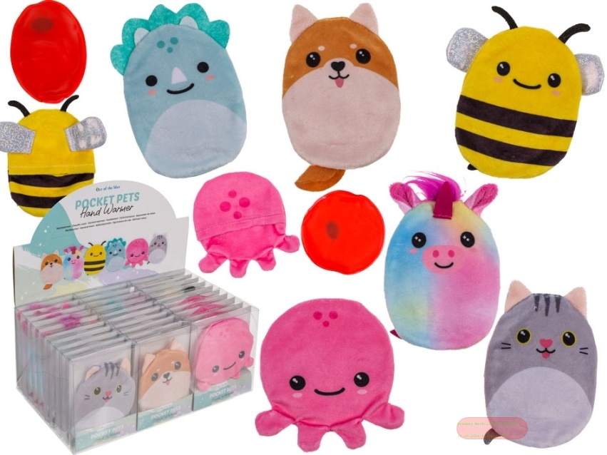 - Handwärmer mit Plüschüberzug Tiere, ca.9cm, Box, gemischt im Display - VE 30