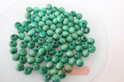 - Holzperlen rund, türkis, ca.100 Stk., Beutel zu 29gr.