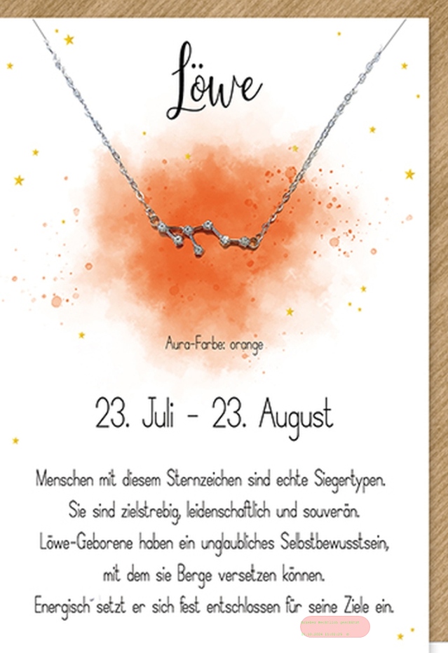 - Karte 11,5x17cm, mit Sternzeichenhalskette Löwe - VE 6